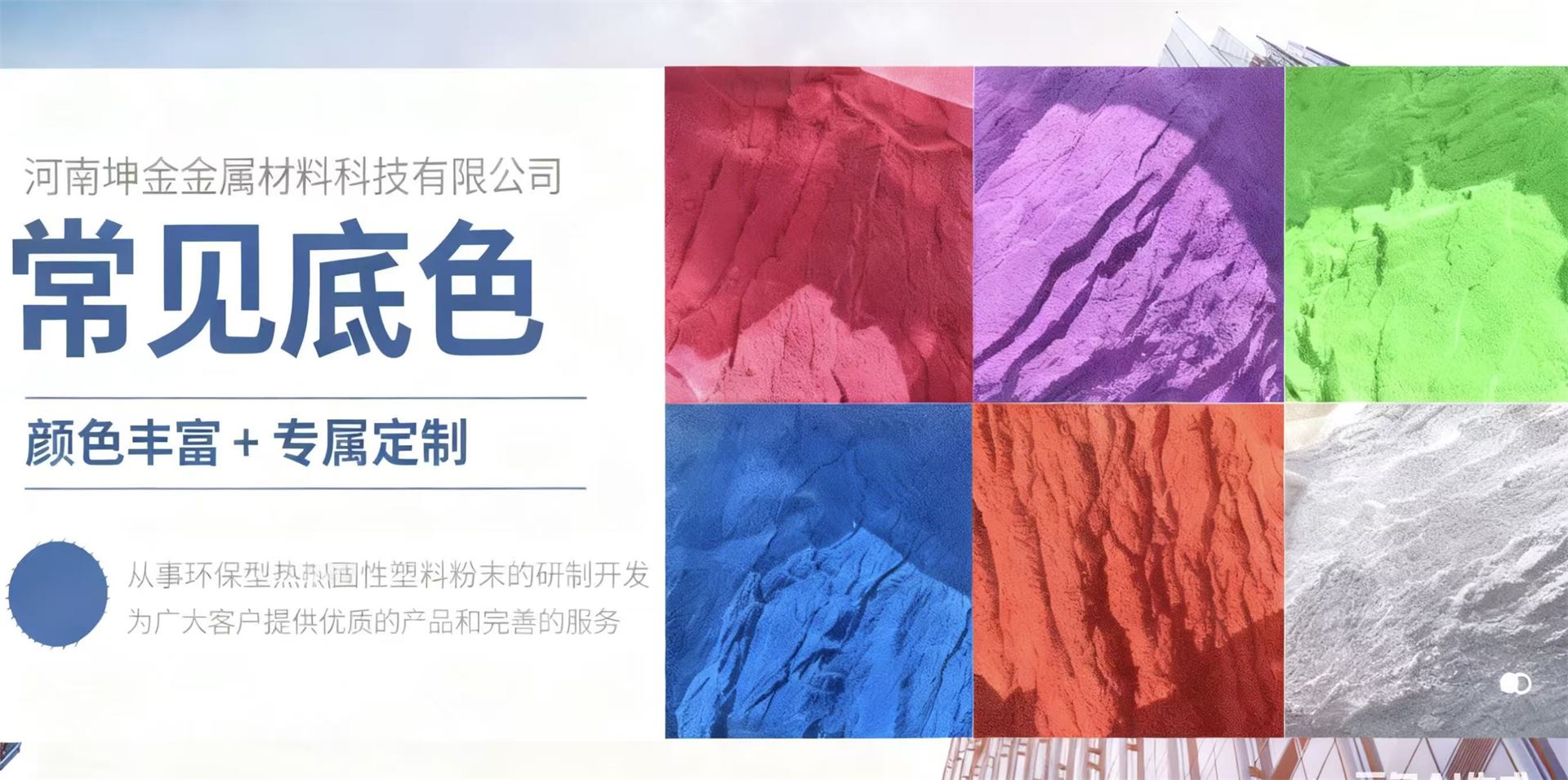 在粉末涂装的广阔世界里,每一款优质塑粉都承载着对品质的执着追求。河南坤金,以匠心淬炼科技,赋予材料超越想象的表现力。 我们的塑粉图鉴,不仅是一份产品目录,更是性能与美学的融合指南。从坚固耐...