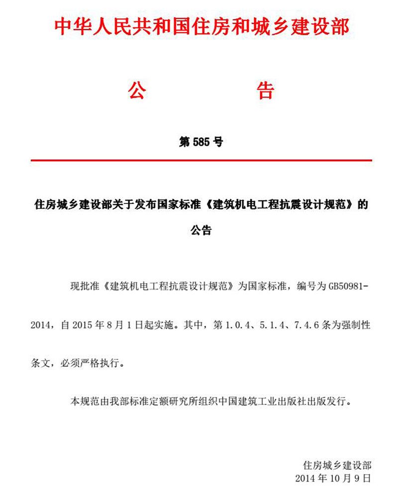 建筑机电抗震支撑系统的研究始于1970年代初,美国根据西部地震多发地带的现代高层建筑内部附属机电设备如:给水排水系统、建筑电气系统、消防管道系统、燃气管道系统、通风与空调工程系统、电梯安装系统和建筑智能化系统等的抗震需求,开发出建筑机电抗震支撑系统。